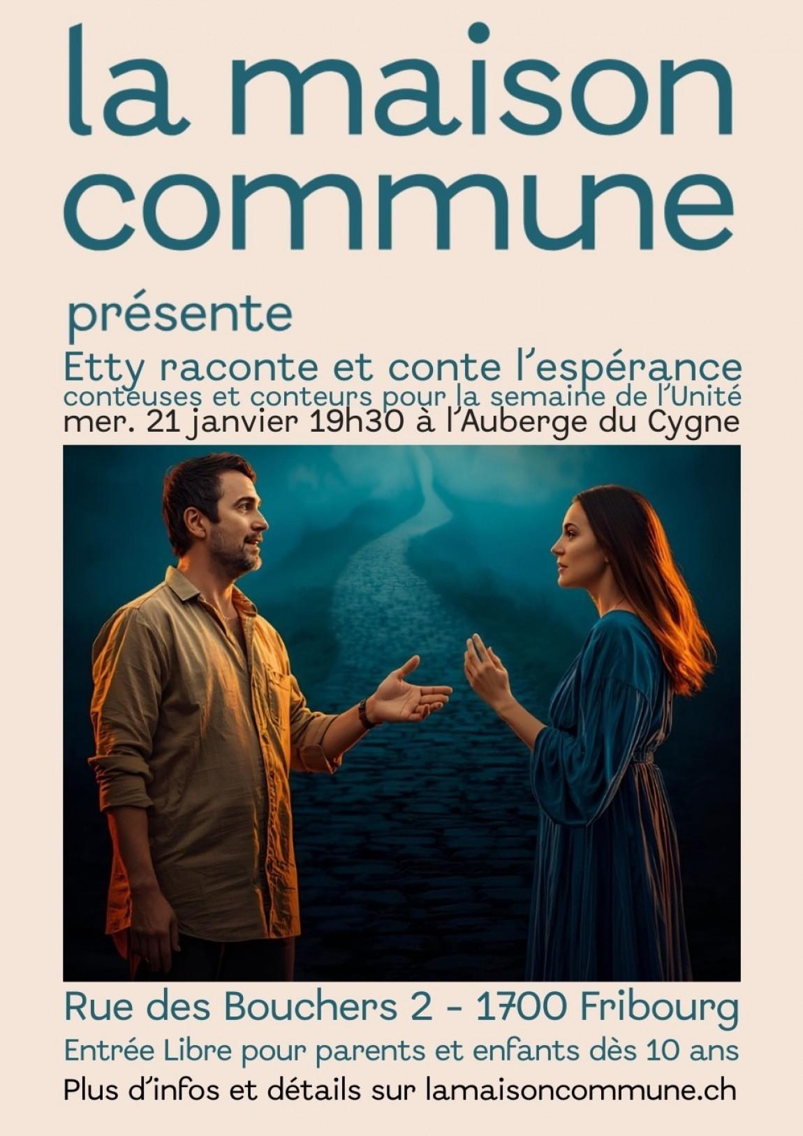 Quelques conteuses et conteurs de Fribourg et des environs vous proposent une évasion narrative, inspirée par des récits tirés de la Bible. Cette soirée de narration biblique pourra commencer autour d’une bière ou d'un thé, dans le café de l'Auberge du Cygne. Ces récits d’hommes et de femmes qui se sont laissés portés par l’espérance envers et contre tout offrent l'occasion de traverser l'histoire biblique et d'y découvrir quelques étincelles d'espérance.